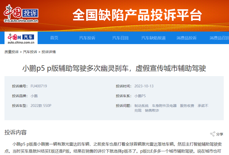 小鹏汽车P5被指虚假宣传城市导航辅助驾驶 致车主多花数万元、引集体投诉
