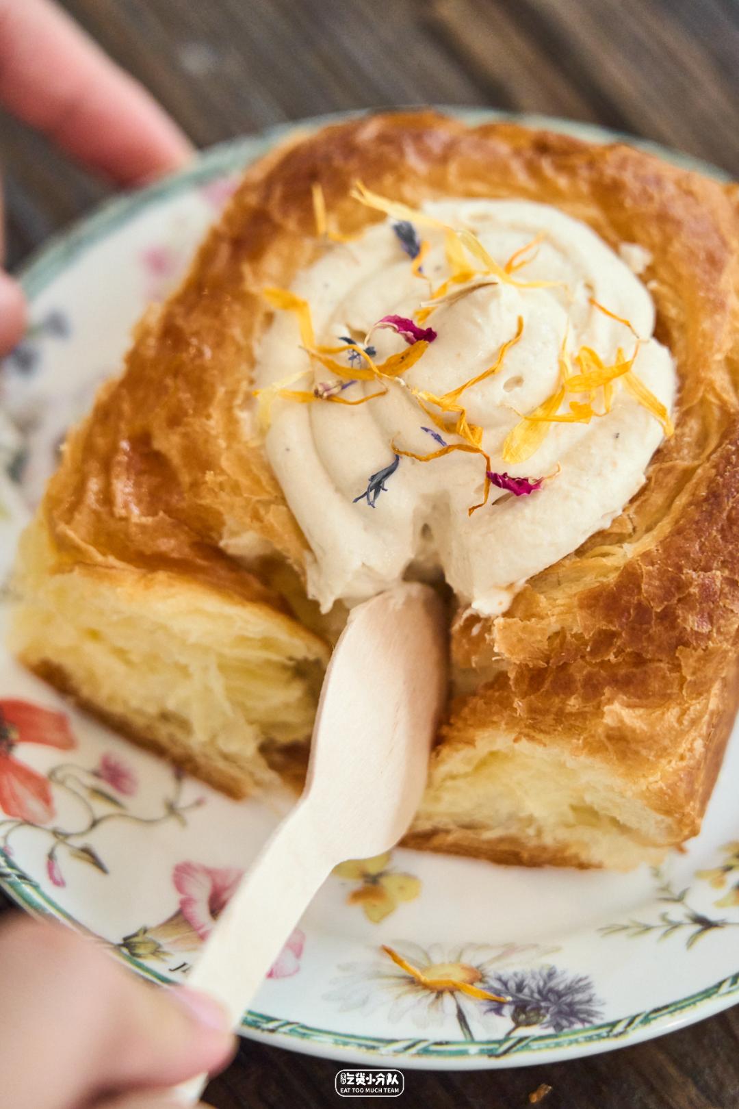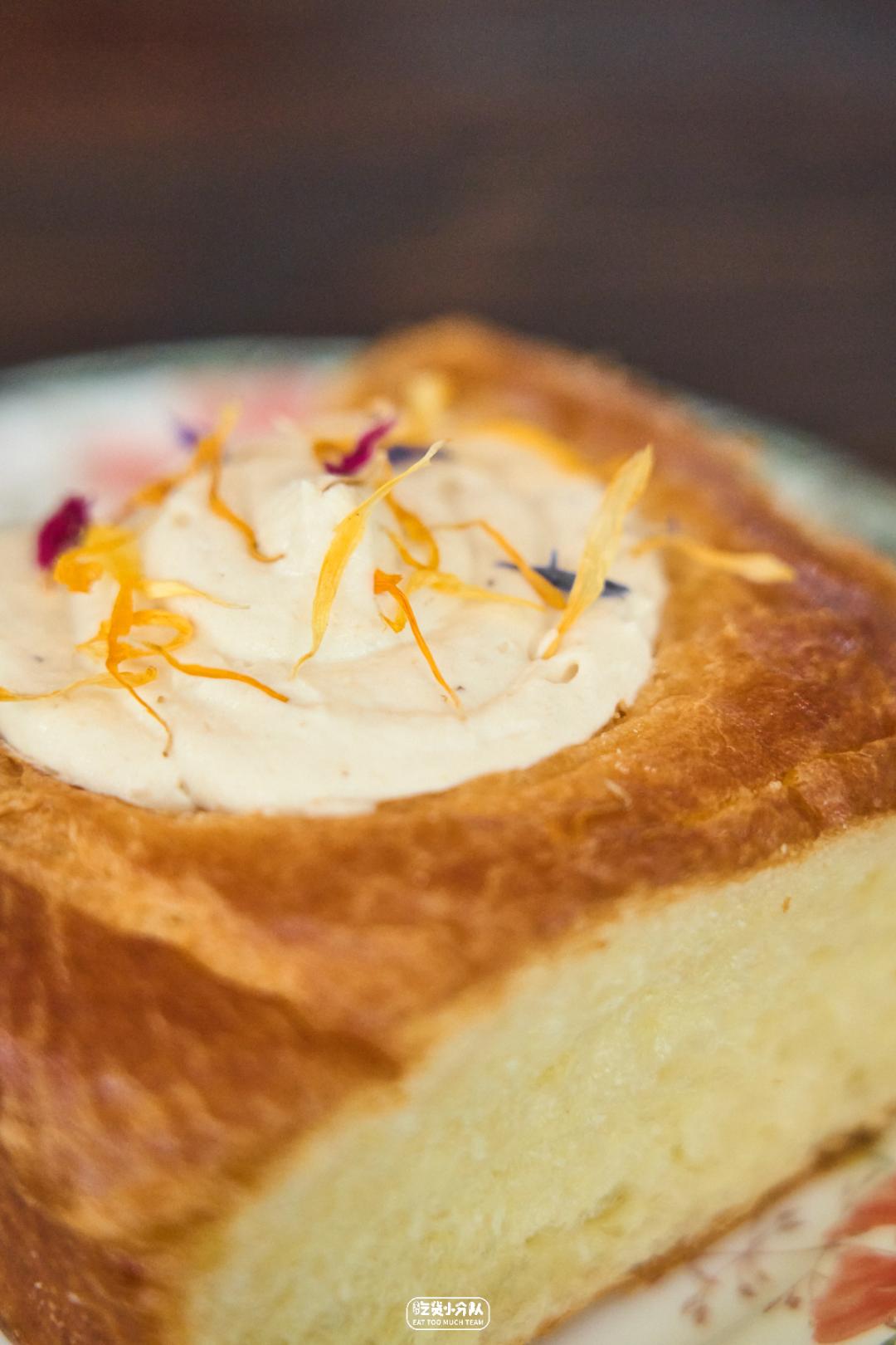 番禺路转角的「团子tuanzi」,像从日剧中走出来的社区小面包屋,主打的也是松松软软的日式面包。品种丰富,几乎每款面包都有老板独特创新的小巧思。最受好评的咸蛋黄肉松吐司,肉松偏脆,面包偏软,甜中带咸,层次很丰富。值得一提的是,他家还会把隔夜面包送给有需要的人,1人限领1个,品质影响不大,还避免浪费,囊中羞涩时候也能来饱腹,好感值直接UPUP。