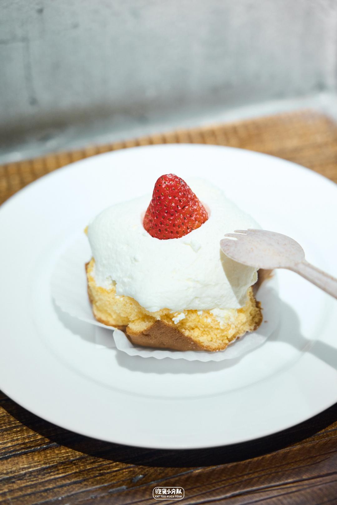 品种超多的「Fascino Bakery」,曾一度被奉为“上海贝果界的天花板”。但这次我们不选贝果,吃这款可爱又出片的“皇家草莓士”,轻盈鲜奶油涂抹在全麦蛋糕胚顶部,面包不是细软那种,咀嚼会有砂糖颗粒感,最后放上草莓做最终点缀,简简单单,却口口都是幸福感。FASCINO BAKERY(幸福里店)