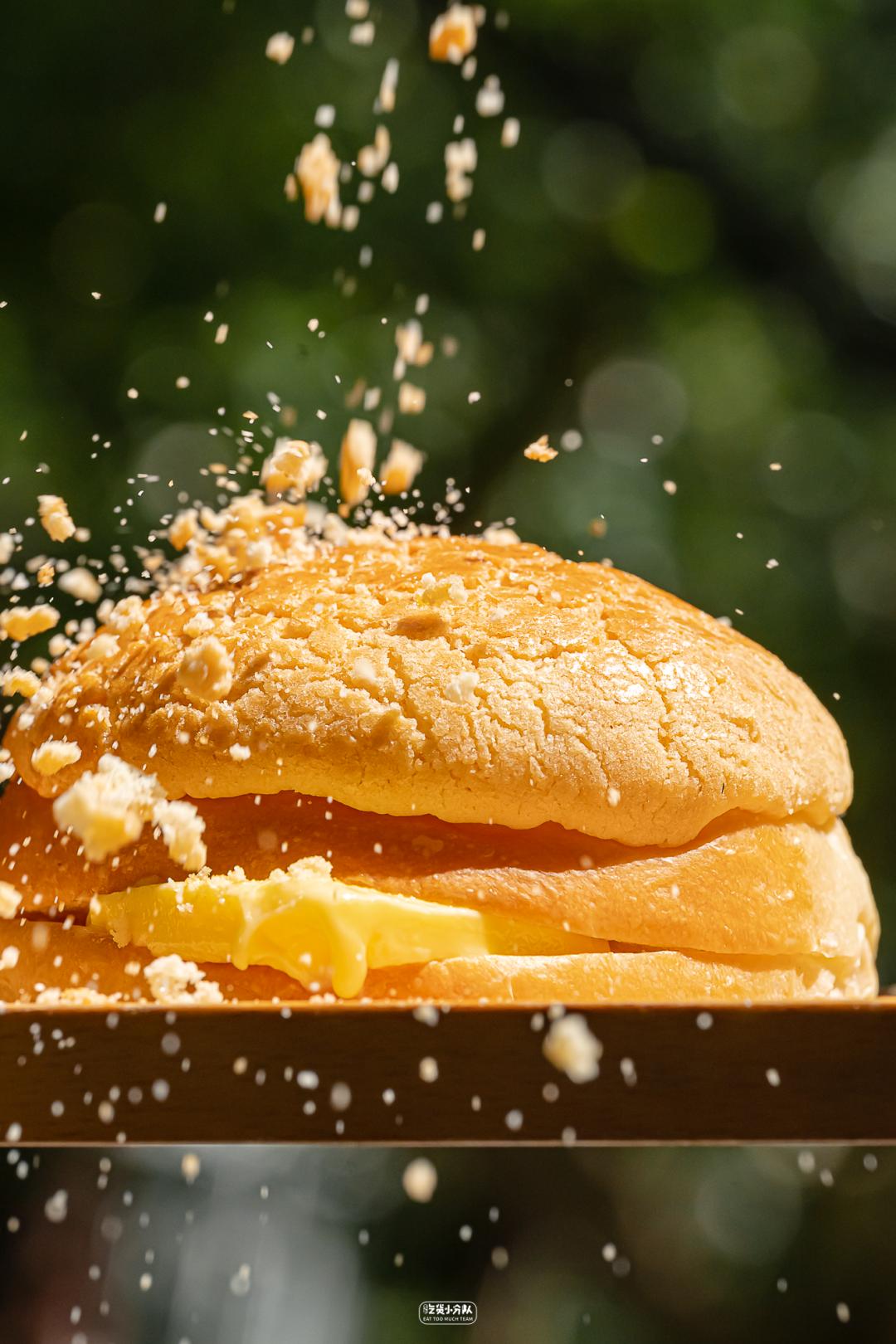 早已数见不鲜、开遍大街小巷的福福饼店,上海首店却是开在这里。小小窗口下面堆满每天现烤手工面包,招牌菠萝包卖的最好,多的时候1天能卖出1000多只。现烤的菠萝包黄澄澄、金灿灿,顶上的酥皮和糖霜簌簌往下掉,待黄油融化,奶香散开,一口咬开脆、软、香,是那种人见人爱的香软好吃。福福饼店·金牌酥皮菠萝包(番禺路店)