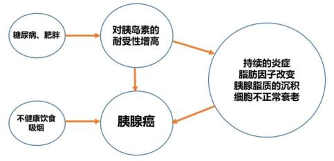 这些以外,还有一个重要的因素是糖尿病史和慢性胰腺炎。根据美国糖尿病协会,二型糖尿病和3C型糖尿病与胰腺癌有比较大的关系。二型糖尿病对胰腺癌的治疗结果也会有一定影响,治疗糖尿病的药物也会影响胰腺癌的风险。