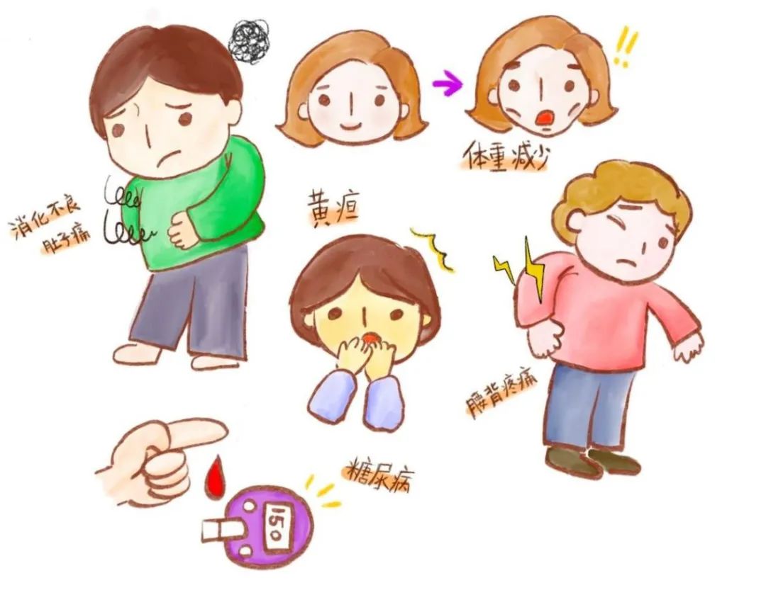 早期胰腺癌没有很特别的症状,出现明显症状往往已到中晚期,失去手术切除的机会,因此很难在早期发现。由于胰液跟消化效率有直接的关系,胰腺功能减弱导致消化不良和肚子痛,接着随着消化吸收功能衰减和食欲减弱,出现体重的大幅度减少。