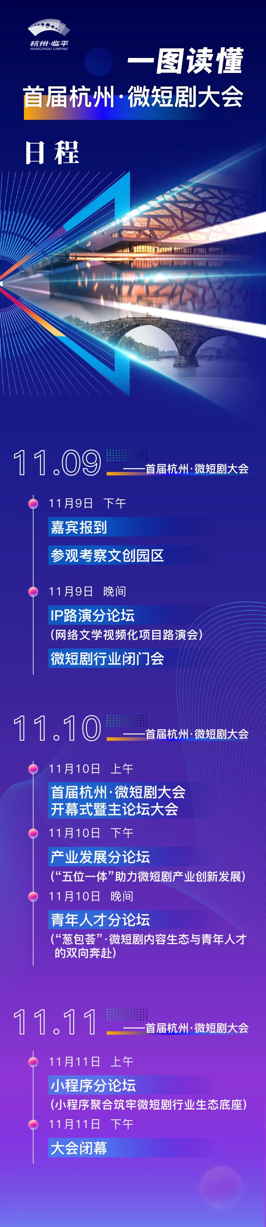 首届杭州·微短剧大会将于2023年11月9日至11日在杭州市临平区举办。