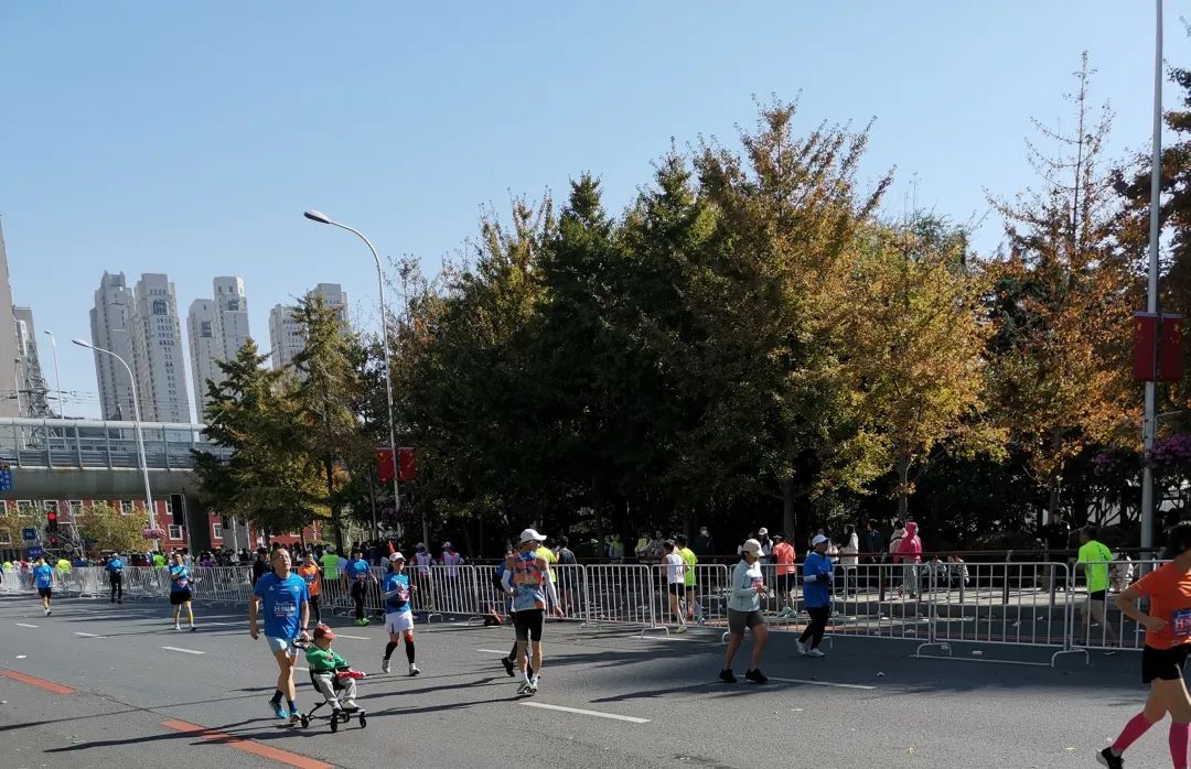 赛道上的多名选手让我热泪盈眶,推着婴儿车跑的妈妈,推着儿童车跑的爸爸,头发花白的老人,不到我肩膀的男孩,一个个神采飞扬,活力焕发。