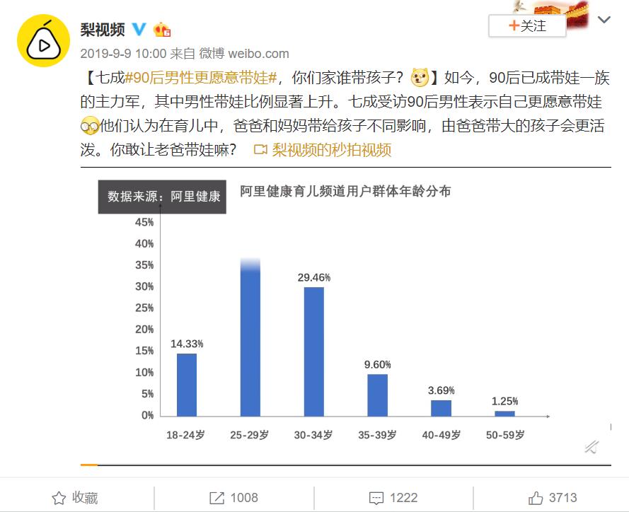 梨视频的一段视频采访中,受访者里约7成90后男性表示自己愿意带娃。