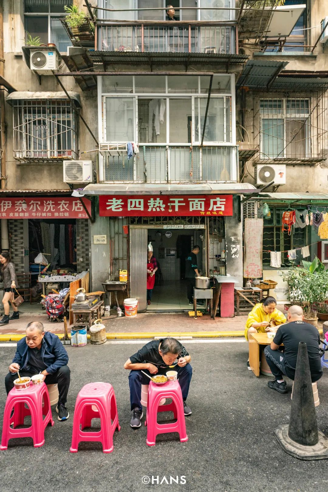 三毛热干面在凯德广场附近,长堤街和汉中街中间的老社区,工作日早上队就排到街上了。推荐我来的是摄影师欧阳。