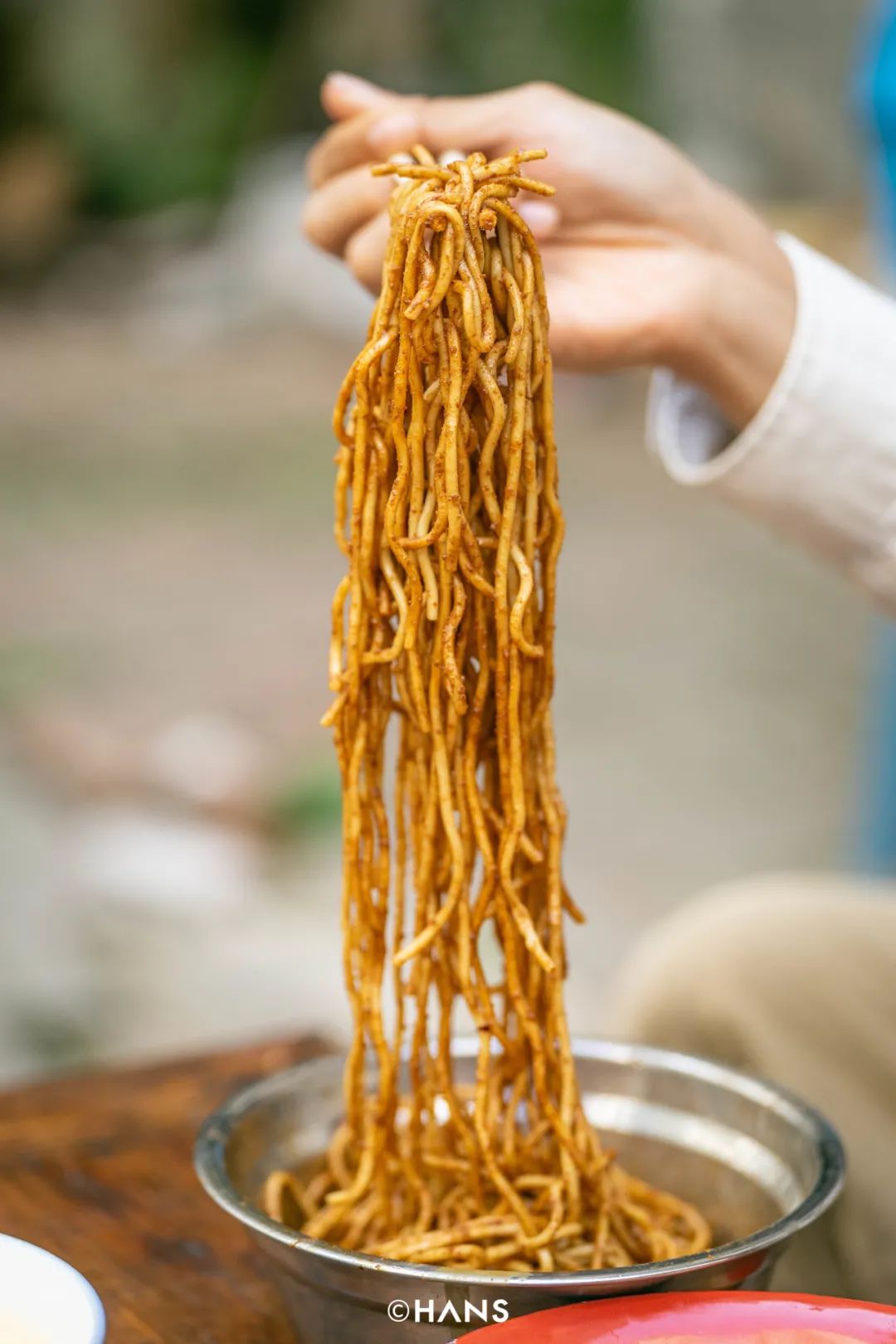 6️⃣ 一整碗面能一筷子挑起来,芝麻酱细颗粒挂在面上,面团摔在碗里能弹起来。
