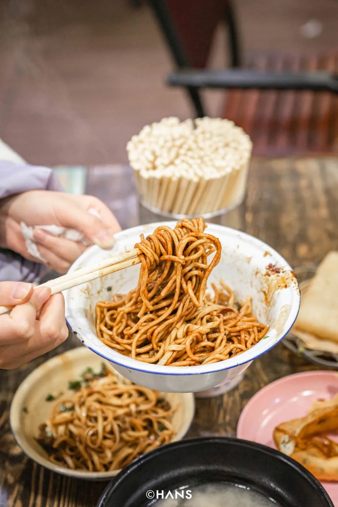 但这才是热干面撒。吃的就是面条的劲道,那一抹碱味,一筷子把芝麻酱的香气挑出来,唤醒你的土著DNA。