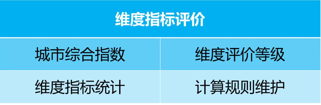 3. 指标评价内置单项指标和维度指标评价规则,结合指标数据自动生成指标评价结果和图表表达。用户可结合本地实际情况维护评价规则。