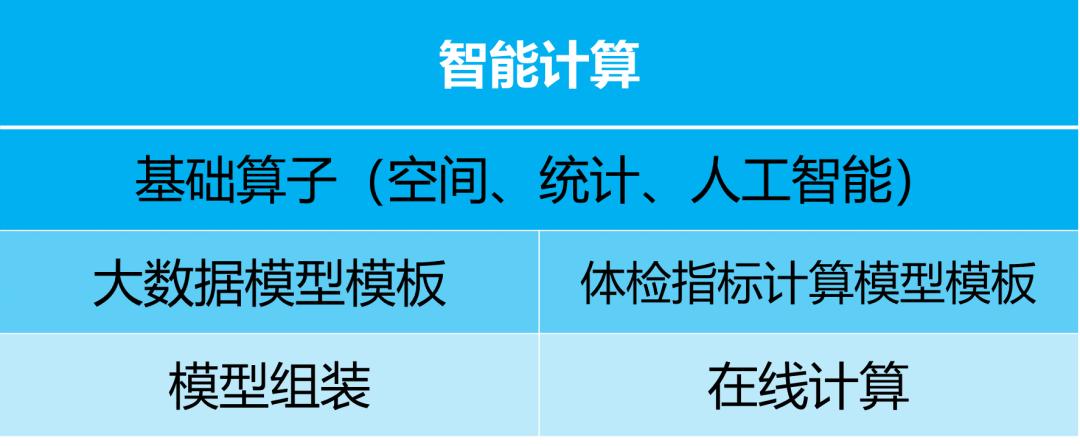 3. 智能计算提供算法模型库,将数理统计、空间分析、影像解译、综合评价、归因分析、聚类分析、预测模拟等核心算子进行封装。提供模型自定义组装功能,智能组装体检业务模型。