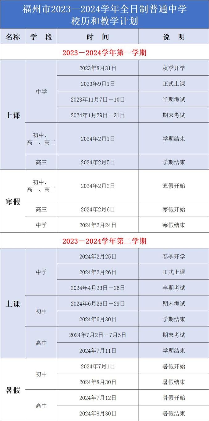 普通高中于2024年2月2日学期结束,寒假从2月3日至 2月25日(农历正月十六)。