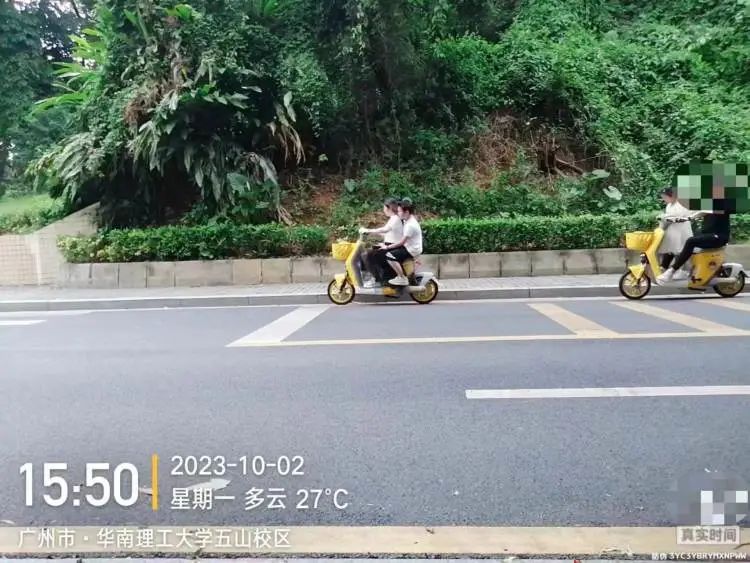 小木的家属提供的资料显示,事故发生后的10月2日下午,家属在华南理工大学五山校区遇到了很多两人共骑一辆共享电动车的情况,这些骑行者均未佩戴头盔。