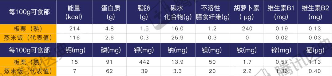 当然,我们并不能直接把米饭和栗子划等号,毕竟板栗含有非常丰富的营养成分[1]。