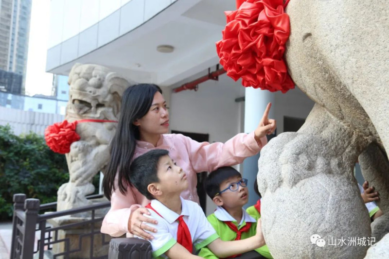铜铺街小学校长为孩子们讲述石狮子的故事。