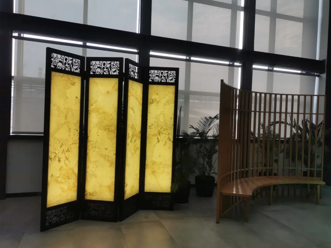 它是蒙娜丽莎瓷砖最新推出的特色功能产品,经过大量试验和技术攻关,使该产品在3mm的薄度下能够产生透光效果,同时达到日常使用的瓷砖强度要求。使该产品能够使用在天花板,灯具,背景墙等多种应用空间中。
