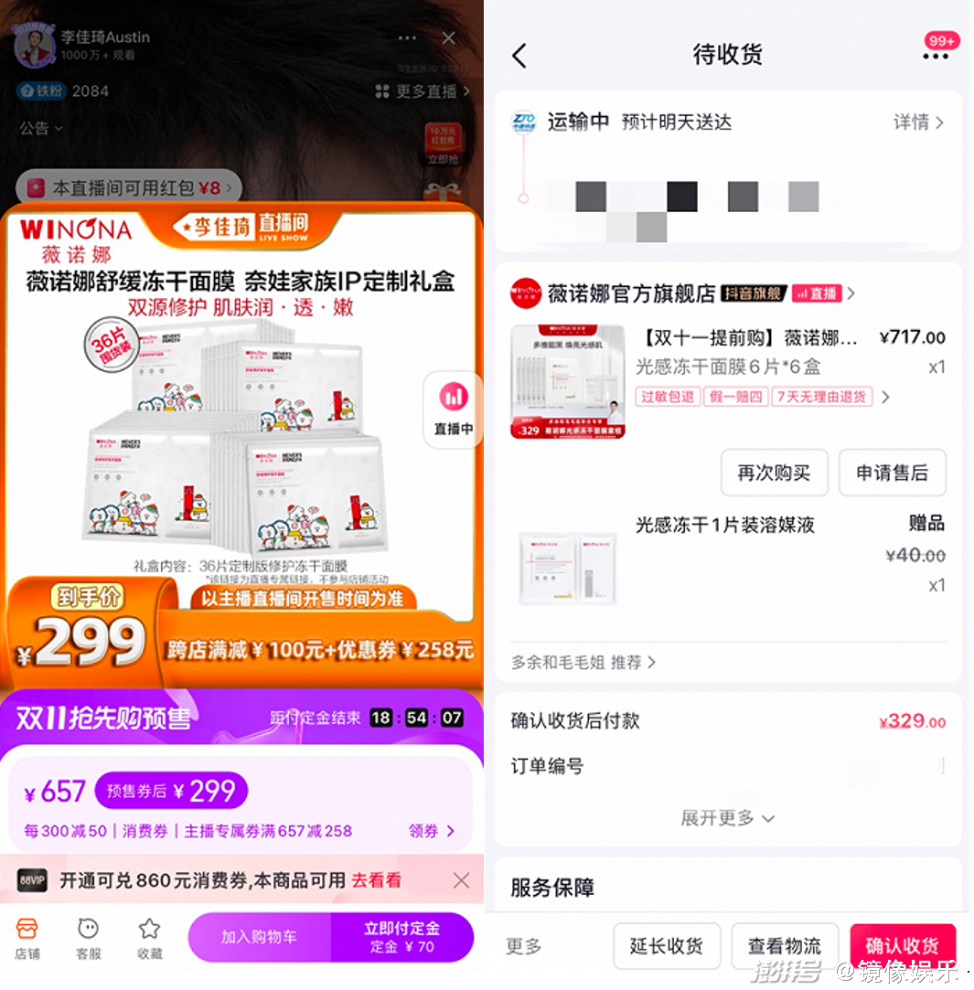 左:李佳琦直播间 右:多余和毛毛姐直播间