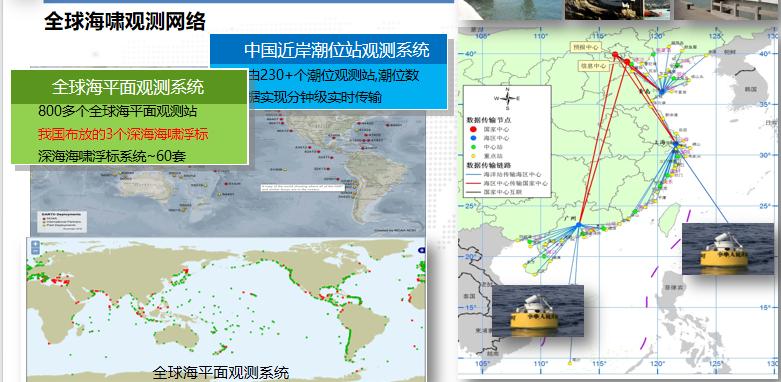 全球海啸观测网络,包括国内验潮站、国际验潮站和深海浮标,具备全球范围内对海啸的观测能力。