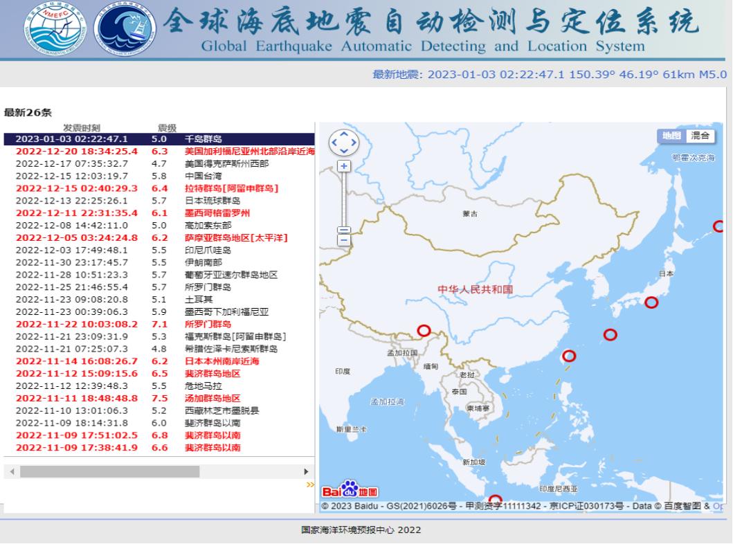 预报中心自主开发的“全球海底地震自动检测与定位系统”,提升了对海底地震的监测能力;