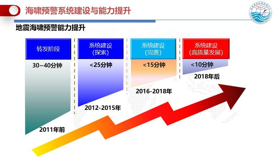 (3)在预报中心的不懈努力下,我国海啸预警业务能力建设成效凸现,海啸预警的及时性和准确性稳步提升,海啸预警信息发布逐步达到国际海啸预警中心响应水平。