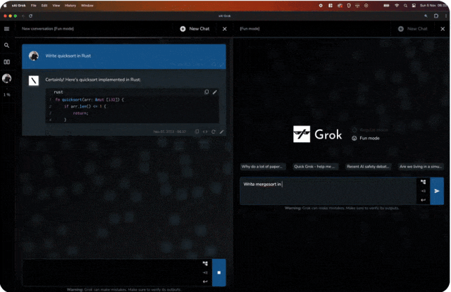 Grok 是一款仿照《银河系漫游指南》设计的 AI,可以回答几乎任何问题,更难能可贵的是,它甚至可以建议你问什么问题!