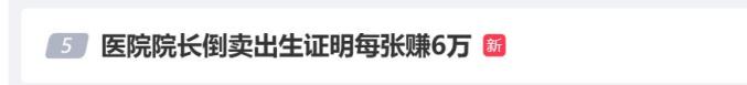 随后,#医院院长倒卖出生证明每张赚6万#的消息冲上微博热搜。