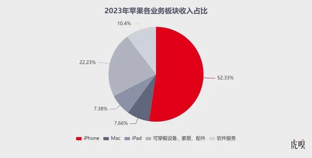 而在iPhone之外,其他业务几乎处于全线崩盘的状态:Mac业务收入76亿美元,同比下滑33.8%;iPad业务收入64亿美元,同比下滑10.2%;可穿戴等其他硬件业务收入93亿美元,同比下滑3.4%。