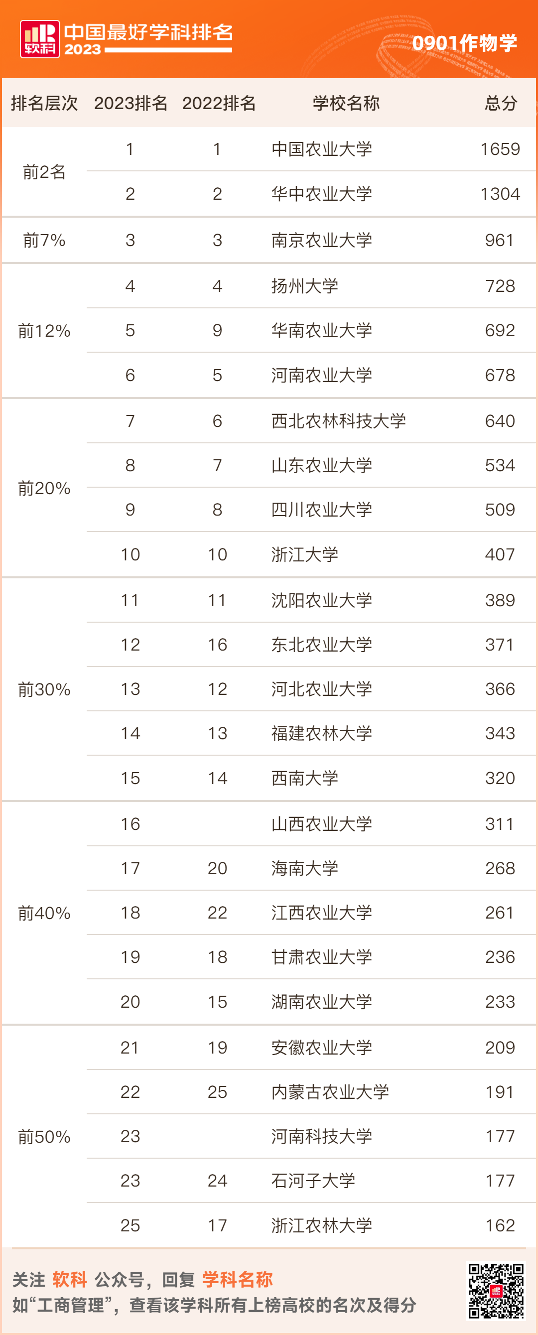 作物学学科完整排名结果如下: