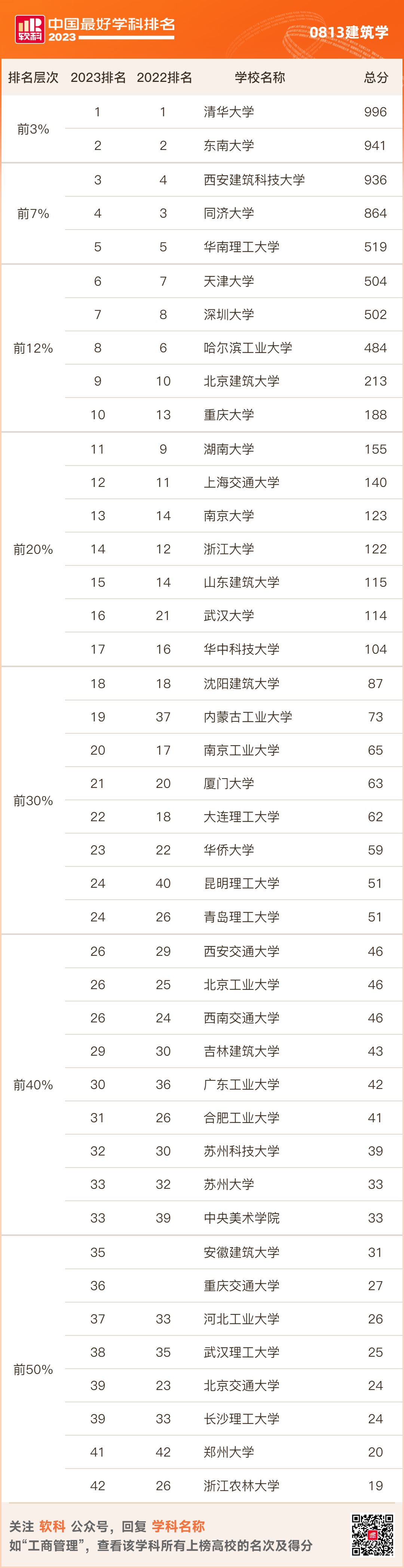 原标题:《软科中国最好学科排名——建筑学》