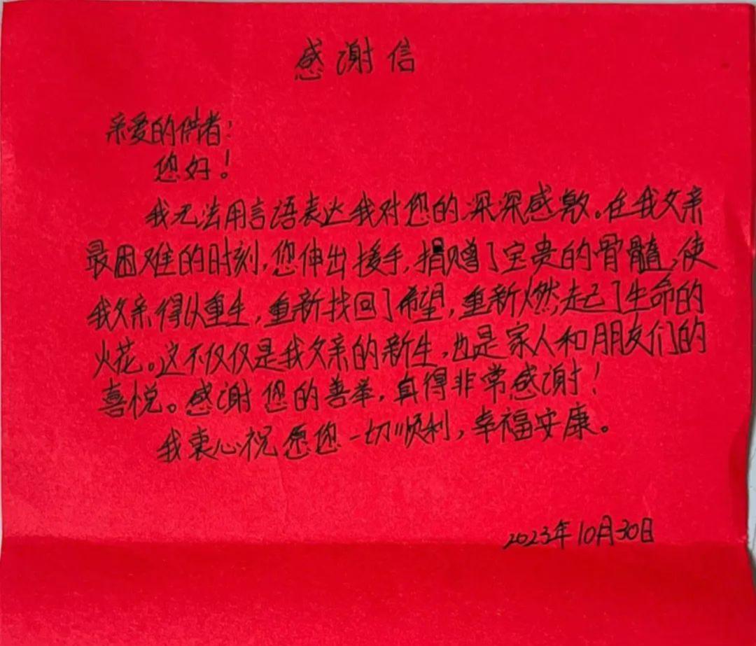 “我无法用言语表达我对您的深深感激……这不仅仅是我父亲的新生,也是家人和朋友们的喜悦……”11月6日上午,泗泾镇社区卫生服务中心中医科的康复治疗师叶燕在华山医院完成了造血干细胞捐献,成为松江区今年第3例、累计第41例,上海市第603例造血干细胞捐献者。当天,接受捐赠的患者家属还寄来了一封言语真挚的手写感谢信。