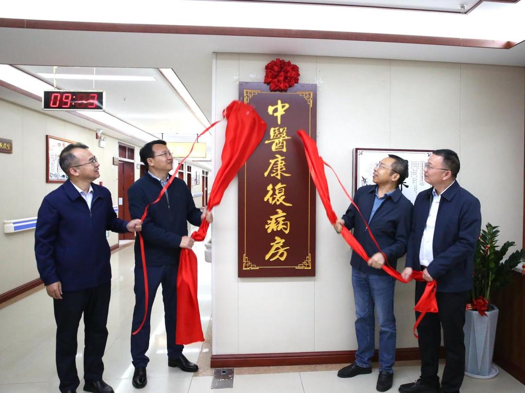 相关领导为长沙市中医医院与芙蓉区东岸街道社区卫生服务中心共建的中医康复病房揭牌。