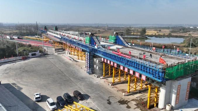11月8日8时,新建合肥至新沂高铁(以下简称合新高铁)安徽段定远2号特大桥跨G329国道系杆拱连续梁顺利合龙,标志着合新高铁安徽段重难点工程建设取得重大进展,为后续无砟道床及铺轨施工打下了坚实的基础。