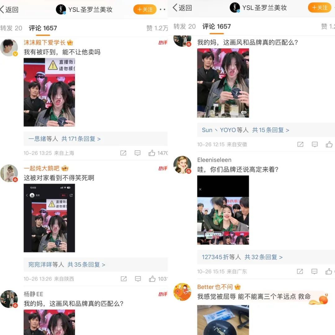 ▲(网友在YSL微博下留言)