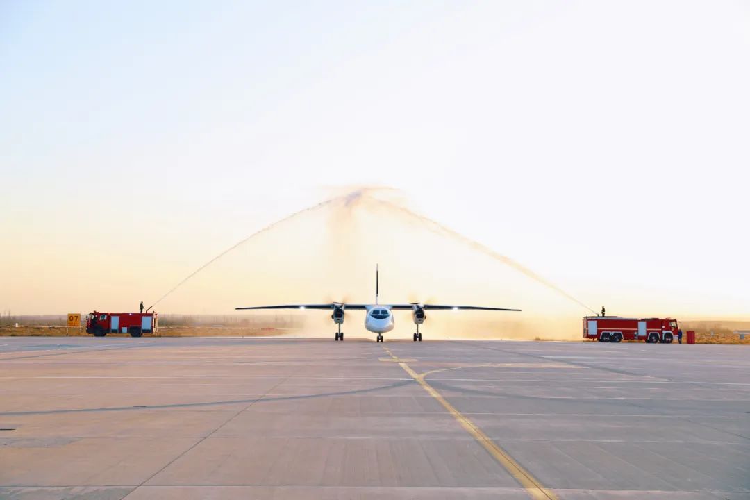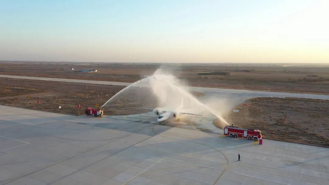 11月10日17时30分,由中飞通航公司副总经理带队飞行,从西安机场飞往鄂托克前旗敖勒召其机场的新舟60飞机平稳降落在跑道上,鄂托克前旗敖勒召其机场以“过水门”民航最高礼遇迎接,随着新舟60飞机顺利滑入机场停机坪,鄂托克前旗敖勒召其机场再添新成员,标志着我旗通航事业发展进入了又一里程碑。来自全旗各行各业干部群众满怀喜悦和激动的心情见证了这一重要历史时刻。