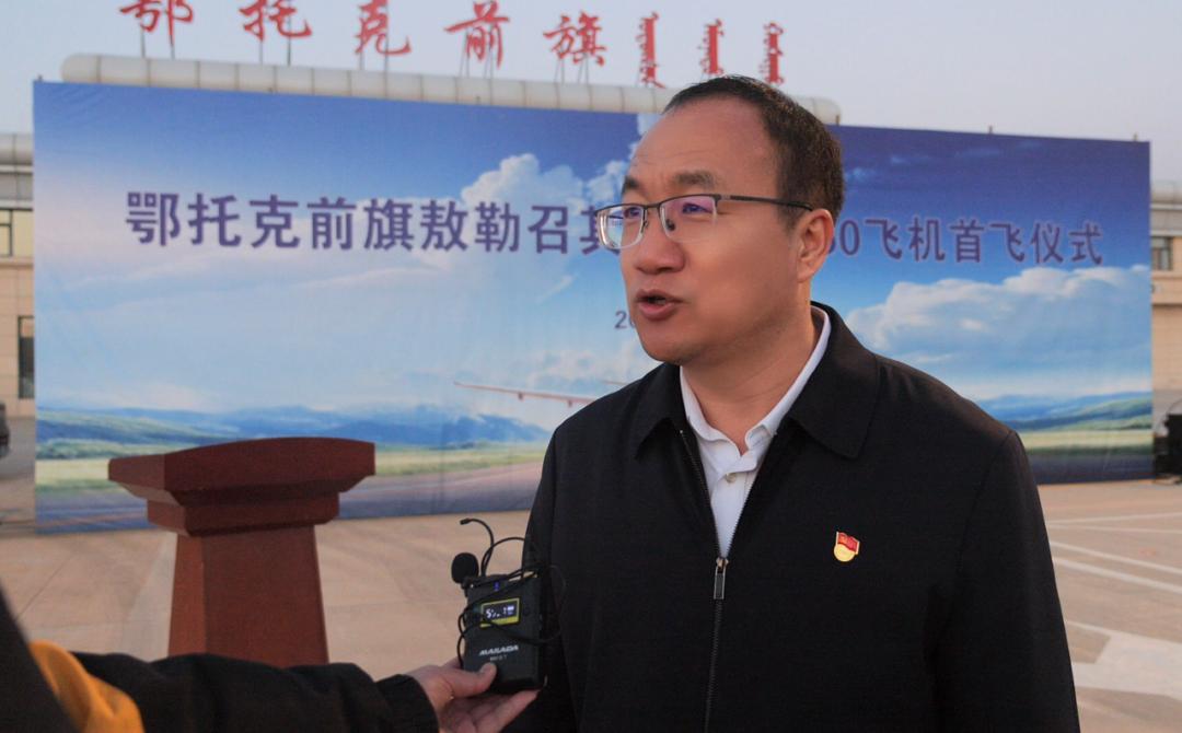 执行本次飞行的是国产的新舟60飞机,飞行速度可以到达500公里每小时,航程2000多公里,目前我们正在做航线申请准备工作,前期工作完成后,计划开通鄂前旗至呼和浩特、鄂前旗至西安航线。