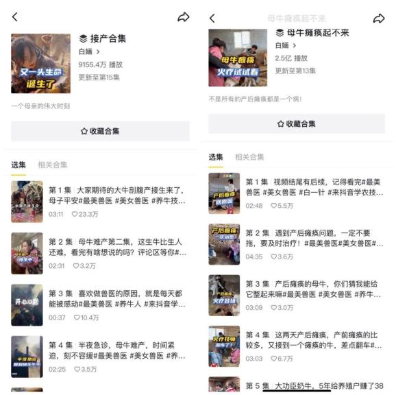 她将自己颇具反差感的故事拍成视频分享在短视频平台,一年间已吸引276万粉丝。通过一系列短视频,这位27岁女兽医,逐渐被越来越多人熟知。人们像追剧一样在线追出诊故事,观摩“母牛的产后护理”,并对乡村兽医这一职业有了新的认知和期待。