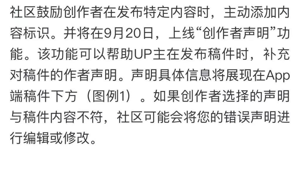 图为某视频发布平台“主动添加内容标识”公告截图。