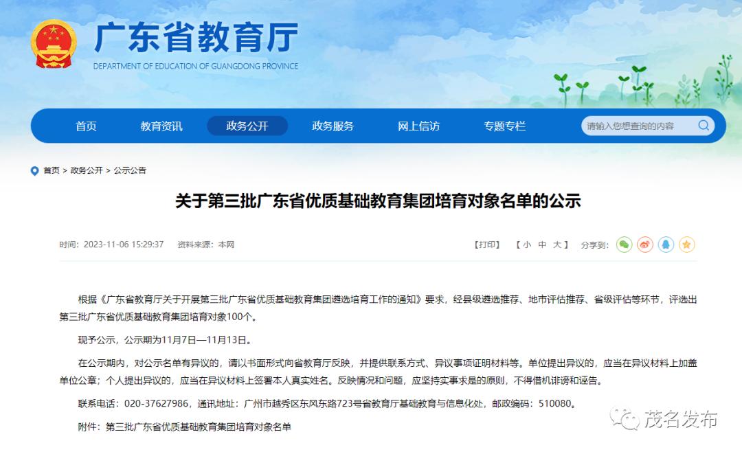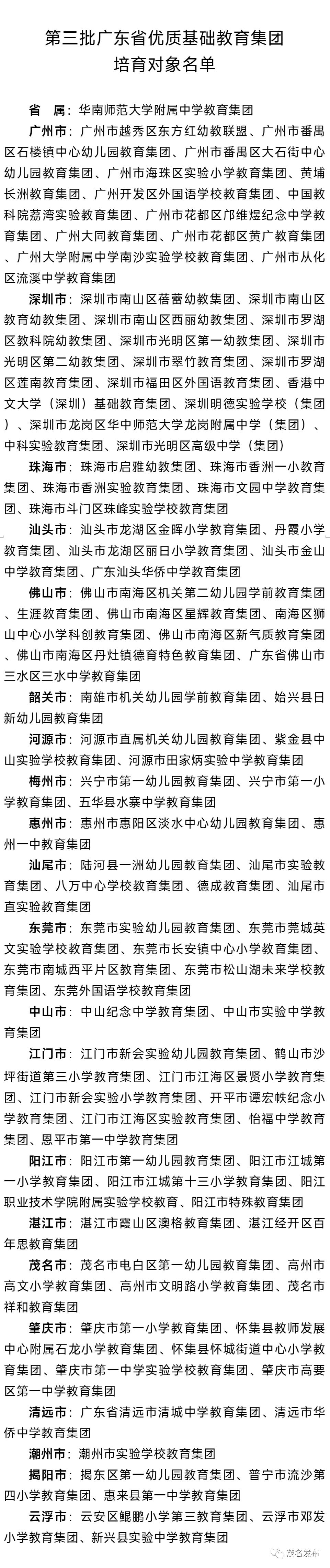 原标题:《茂名+4 !省优质基础教育集团培育名单公布》