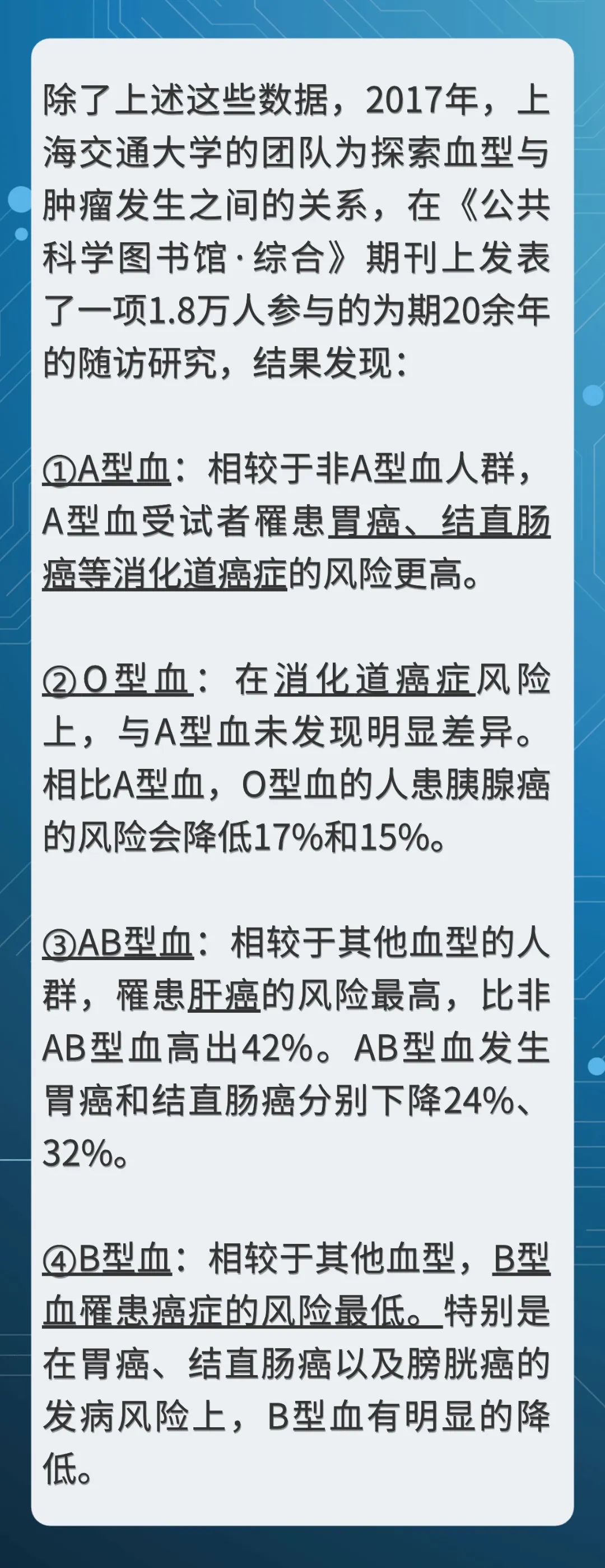 无论各种血型的疾病风险如何,都只是指相关性,而非因果关系。