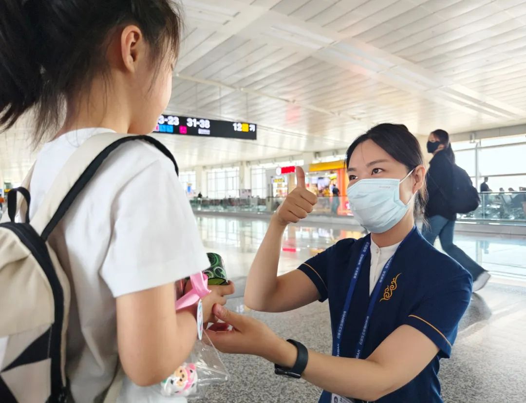 “我进入航站楼的时候特别茫然,你们那粉色首乘旅客爱心标志一贴上,突然就心安了。”