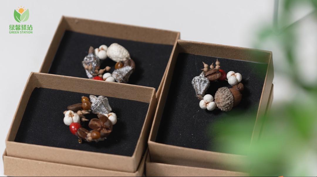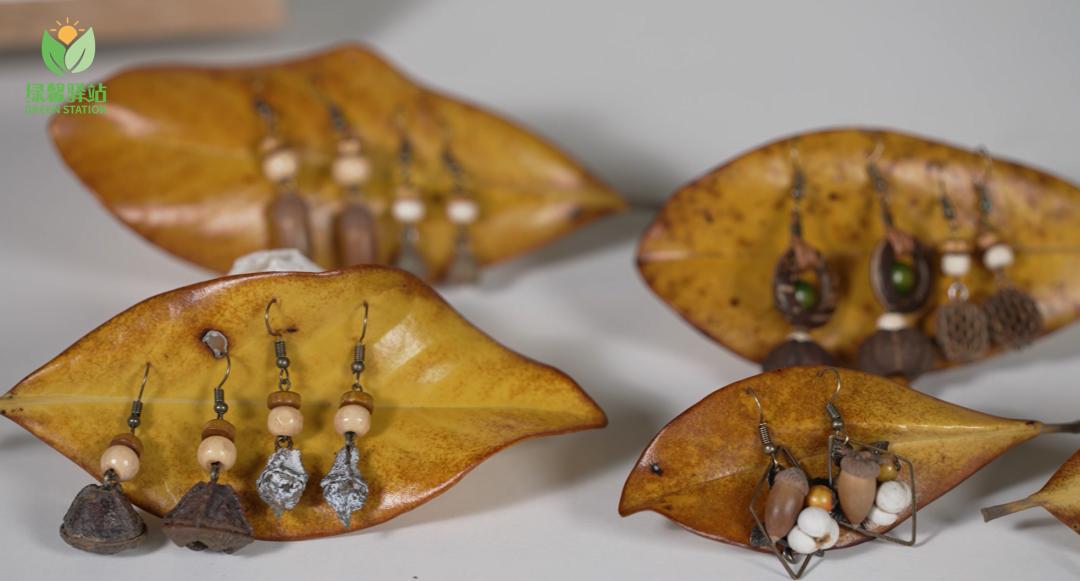 除了手串、耳饰,把不同颜色、形状的种子组合搭配,还能做成胸针戴在身上。