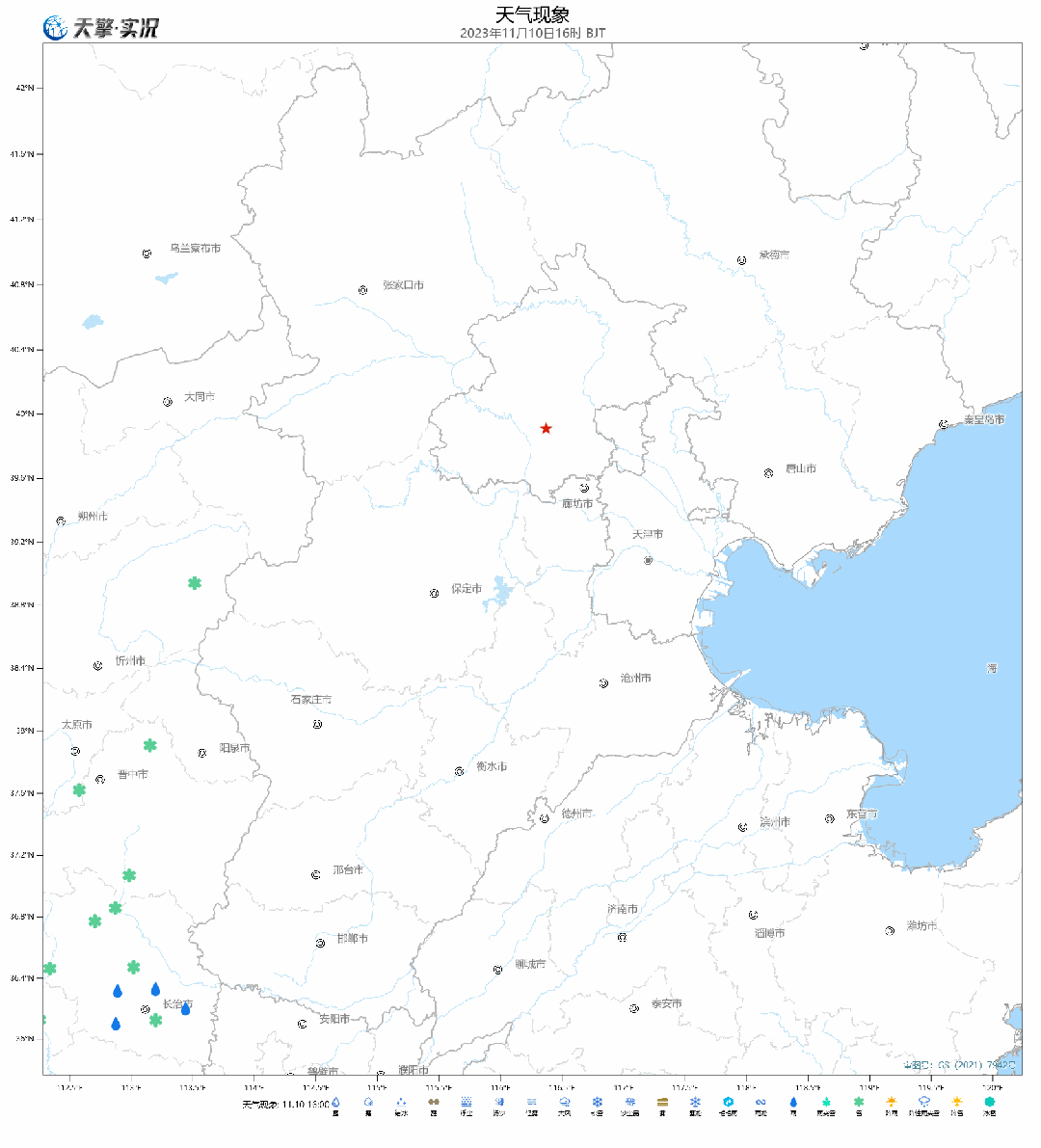 明天白天,沧州和保定、廊坊及以北地区有偏北风4到5级,阵风6到7级,沿岸海域和沿海地区有偏北风5到6级,阵风7到8级。