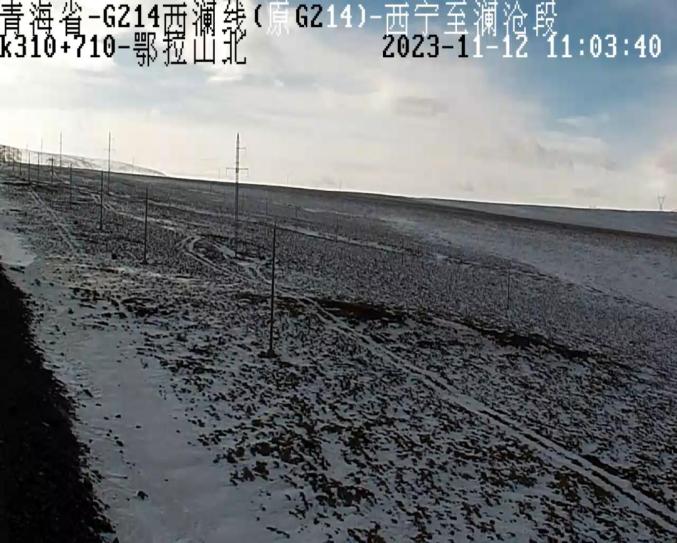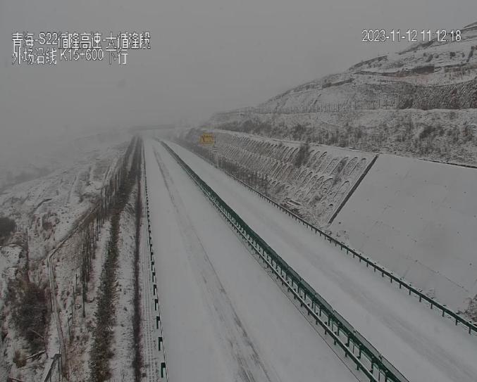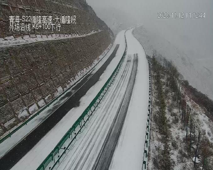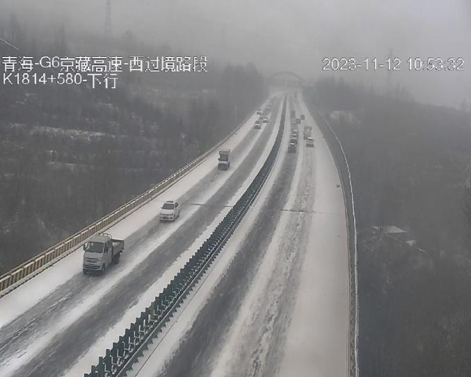 G214国道西澜线(西宁-澜沧):鄂拉山北路段降雪。