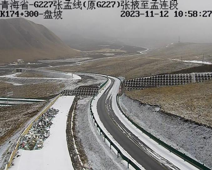 G227国道张孟线(张掖-孟连):黑泉水库路段、俄博岭路段、景阳岭路段、盘坡路段降雪。