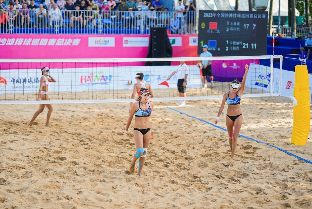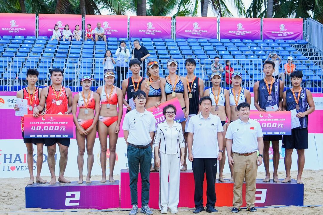 经过四天的激烈角逐,2023年全国沙滩排球巡回赛总决赛于11月11日在海口市假日海滩圆满收官,男子组湖北队荣获金牌、海南队荣获银牌、云南队荣获铜牌,女子组新疆队荣获金牌、山东队荣获银牌、江苏队荣获铜牌。