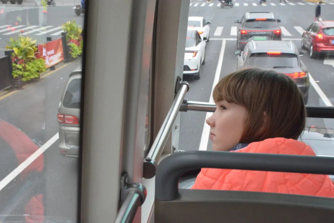双层大巴从北到南穿行杨浦,途经新江湾城社区生态走廊、复旦大学、杨树浦水厂等特色景点,每过一处,杨浦现代与历史并存、守正与创新并重的精神风貌都展示得淋漓尽致。