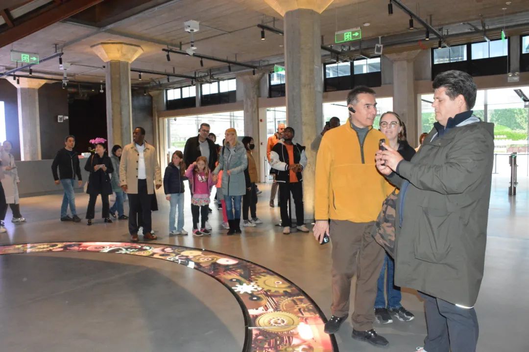 作为这座杨浦滨江新地标的“首批游客”之一,外籍友人们感到无比新奇与激动。大家跟随讲解,陆续来到了“工具与我们的世界”“技能发展与中国”等核心展区,小朋友们也兴奋地在互动体验区感受全息投影、红外交互、人工智能等数字技术的震撼效果,为技能给生活带来的改变而惊呼。