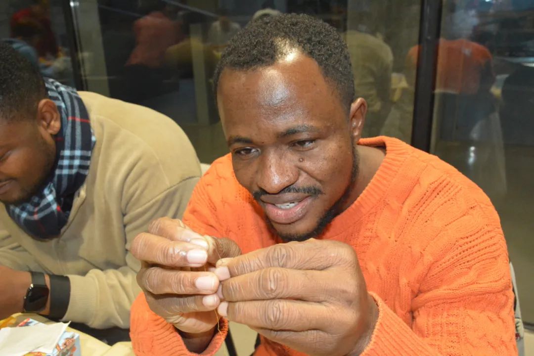 “香囊制作看起来简单,但做起来难,比如穿针引线这一步骤就花费了我不少功夫。不过最终做出了成品,很成功,我也很开心。”来自法国的Promethee Nicolas Evangele Spathis笑着表示,“我很喜欢香囊的香味,打算把它带回家,挂在房间里,作为今天活动的纪念。”