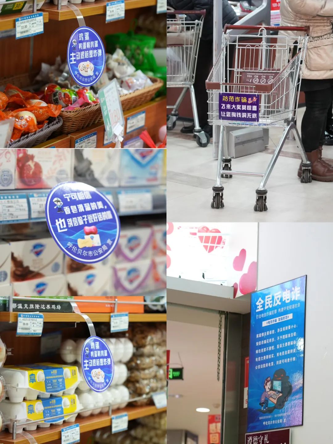 “鲤鱼鲫鱼黄花鱼,中奖退税是骗局。”“鸡蛋鸭蛋鹌鹑蛋,主动退赔是‘炸弹’……”这一句句诙谐幽默且与各种商品特性紧密结合的反诈标语出现在超市内,既有丰富创意,又使反诈宣传口号入脑入心,这正是呼伦贝尔市公安局反电诈宣传专班依托“利剑3号”集中攻坚行动和海拉尔区爱购超市深度合作建设反诈宣传阵地的缩影,让人民群众在走进超市的同时也体验到浓厚的反诈氛围。