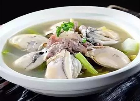 原料:台山靓生蚝10只,意大利黑猪肉100克,95头鲜瑶柱50克,筒骨2500克,鸡脚1000克,姜片少许。