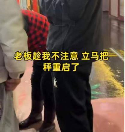 “B太”称要给市场监管局打电话,老板娘听后迅速将秤重启。